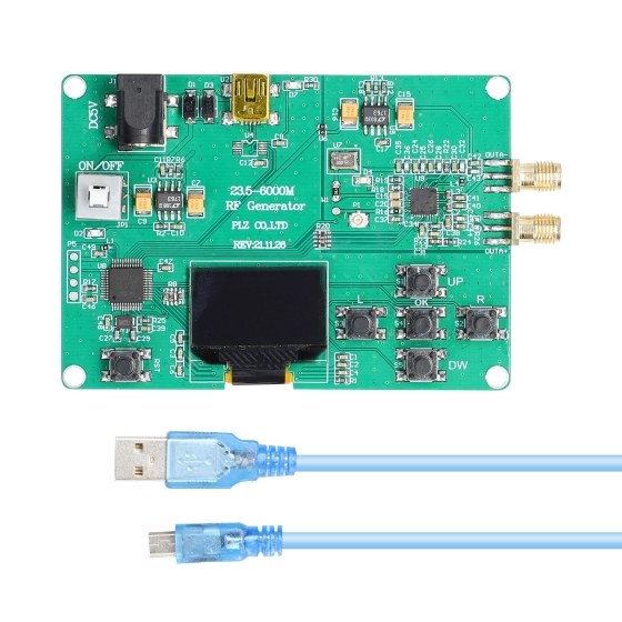 This RF generator module adopts quality printed circuit board, and mini component, compact and light weight. There are two operation modes, dot frequency mode and sweep-frequency mode. Equipped with parameter setting function, initial frequency, end frequency, sweep-frequency-step can be set. Three kinds of output frequency ranges optional, you can choose 137.5-4400MHz, 35-4400MHz, or 23.5-6000Mhz according to your demands.