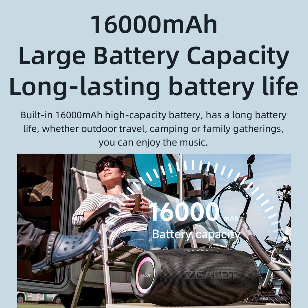 ZEALOT S87 BT Speaker - Wireless, 80W Booming Sound, LED Lights, Waterproof, Portable
