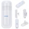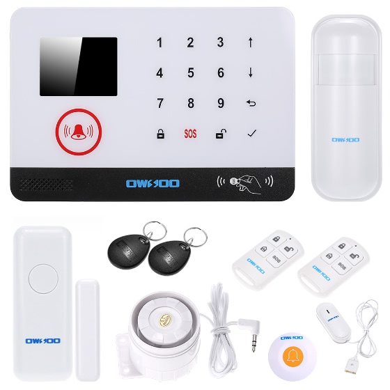 This alarm system contains a alarm panel, a PIR sensor, a door sensor, a water sensor, a wired siren, a wireless doorbell button, two RFID cards and two remote controllers. You can arm / disarm this alarm system via host, phone or remote controller. When the thief comes in or the water overflow, the alarm will send out 110Db warnings to scare away the thief, or it will push alarm information to your App to remind you, so that it can help you reduce property loss and guarantee your home security.