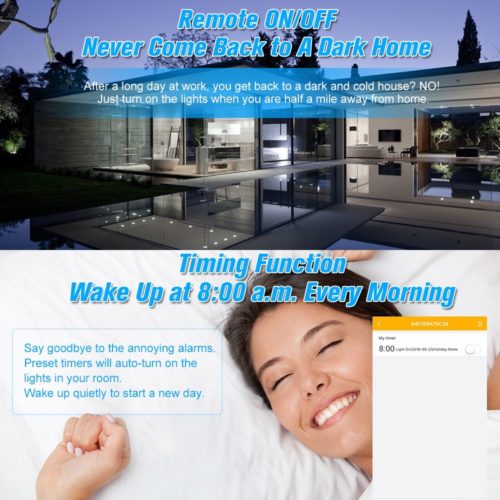 *Theft-proof Function: You can turn on your home LED strip lights by phone App at night when you're out of home on a business trip or journey, and turn them off after several hours, to create false impression that somebody is at home.