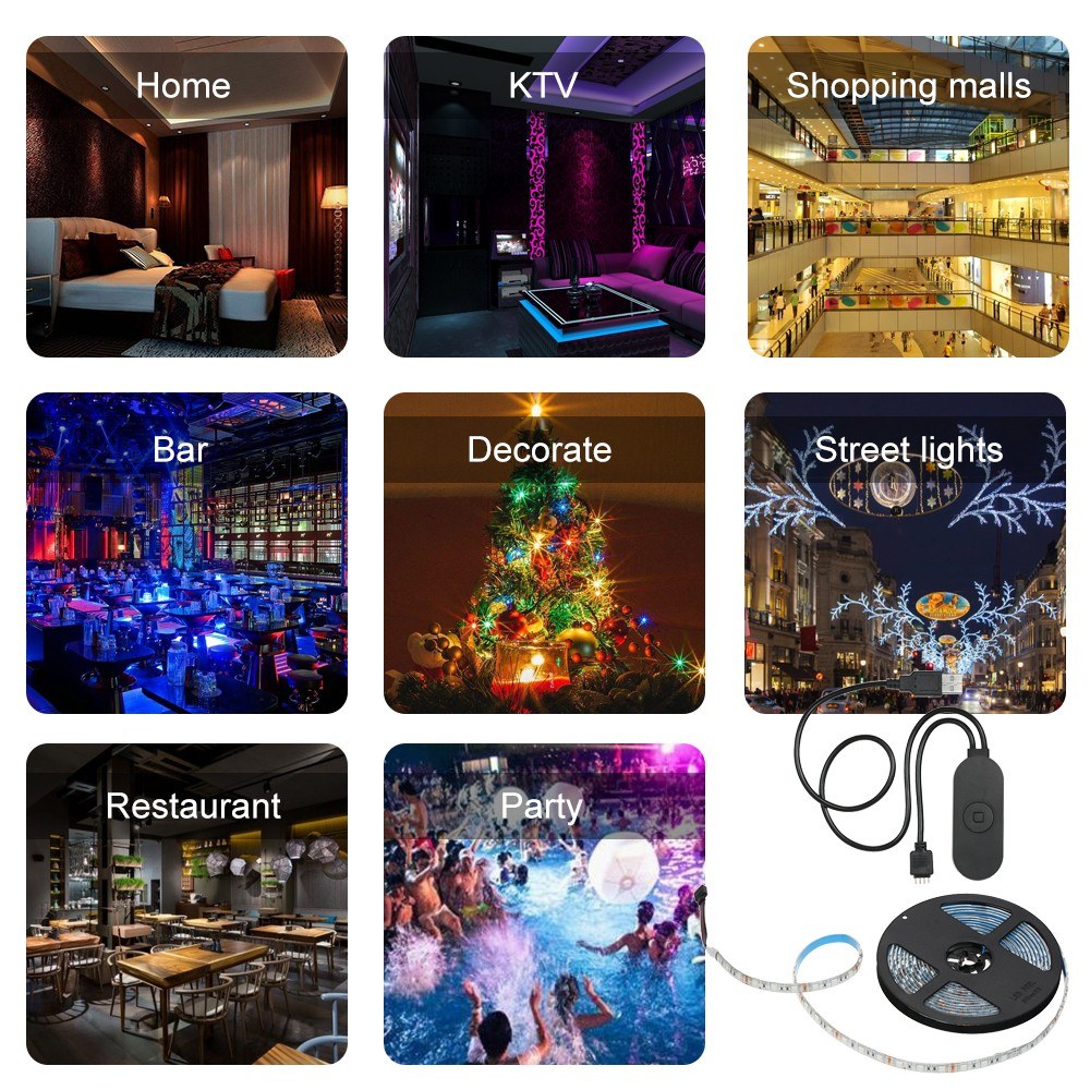 The Smart USB RGB Strip Lights Kit are easy setup, after connecting the Wifi Led Strip Controller to RGB strip light and power adapter, and installing MangoHome App to your smart phone, you can use your phone APP to remote control the lights on/off, colors and brightness. It's energy-efficient, environmental protection, great convenience and humanized design with multi-functions. It also supports timing turning on/off the appliances at a specified time, and group control all the strip lights. You can also voice control your home appliances by Amazon Alexa, and for Google Home, enjoying intelligent life and making your life smarter. It's widely used to heighten atmosphere and decoration in home, office, hotel, KTV, party, shopping malls, entertainment venues, traffic system, showcase, residential, exhibition room, landscaping, etc.